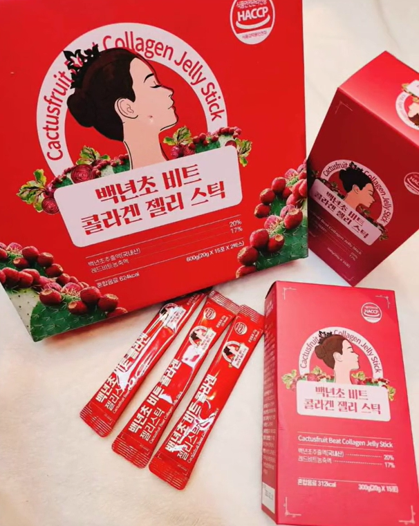Dragon fruit jelly with red bean, mulberry, and collagen